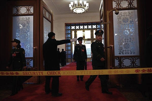 2024年3月5日,中共軍方代表抵達北京人民大會堂出席中共人大會議開幕式。(Jade Gao / AFP)