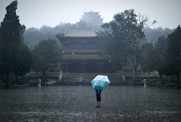 2024年5月30日,北京遭遇狂風暴雨,故宮內廷的坤寧宮的瓦片被大風吹落。圖為北京故宮。(Wang Zhao / AFP)