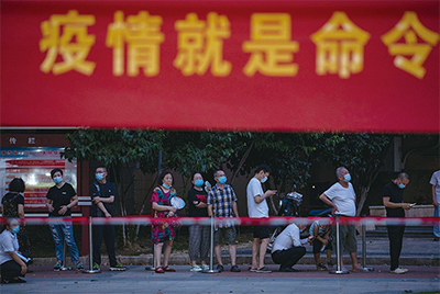 2021年8月3日,湖北省武漢市居民排隊接受新冠病毒檢測。(STR / AFP via Getty Images)