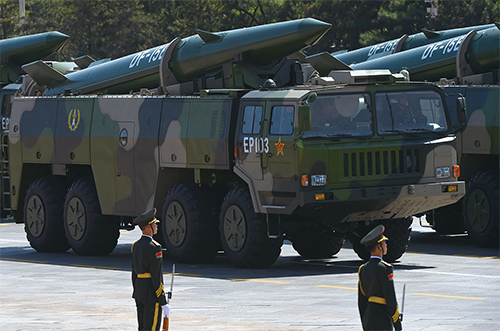 哈爾濱工業大學專長於航天領域,曾成功發射過20顆小衛星,同時也是製造東風導彈的大學。圖為2015年9月3日,裝載東風-15B導彈飛彈的軍車參加北京閱兵式。(Greg Baker / AFP via Getty Images)