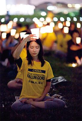 2010年7月22日,法輪功學員在美國首都華盛頓紀念碑前舉行燭光悼念活動。(愛德華/大紀元)