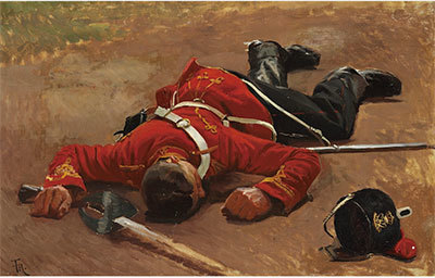 弗朗茲.彼得.漢尼生(Frants Peter Henningsen),〈倒在地上的德國驃旗兵〉(A fallen German Hussar),1901 年。(公有領域)