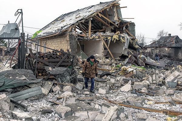 近幾年,西方在俄羅斯和中共敵對意圖的認知上犯了錯。圖為2023年12月11日,基輔,一位當地居民走過一棟住房廢墟。(Roman Pilipey / AFP / Getty Images)