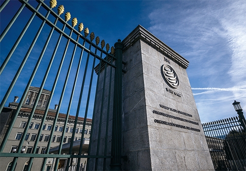 美國讓中共加入世貿,意圖依靠投資中國經濟來改變中共的策略,給西方帶來了極其嚴重的後果。圖為位於日內瓦的世貿(WTO)總部的標識。(Fabrice Coffrini / AFP / Getty Images)