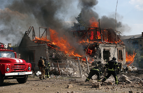 俄羅斯入侵烏克蘭,讓遠在歐洲的那些面臨俄羅斯威脅的國家,與亞太地區面臨中共威脅的國家重新結盟。圖為2024年7月21日烏克蘭頓內茨克地區一棟遭飛彈襲擊的私人住宅。(Anatolii StepanoV / AFP)