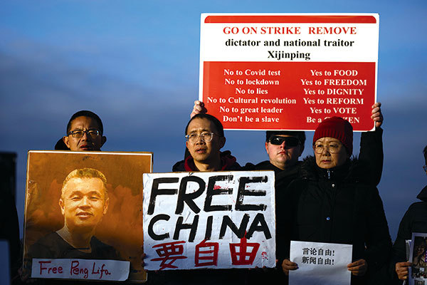 2023年11月29日在華盛頓特區美國國會大廈外,紀念中國白紙運動一周年。(Drew Angerer / Getty Images)