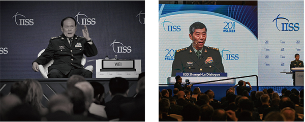 中共二十屆三中全會前夕,6月27日,兩任前國防部長魏鳳和、李尚福被起訴,表明新一波大清洗業已開跑。圖為魏鳳和(左)、李尚福(右),分別於2022年、2023年在新加坡香格里拉對話峰會上發言。(Roslan Rahman / AFP)