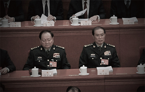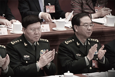 軍隊對中共當局不忠的風氣起於張陽和房峰輝兩個上將。據聞房、張策劃在十九大前發動政變卻走漏風聲,房峰輝被判無期徒刑,張陽則畏罪自殺。圖為張陽(左)、房峰輝(右)2017年資料照。(Feng Li / Getty Images)
