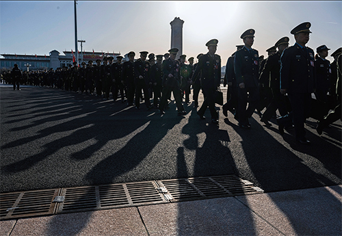 軍方代表參加中共兩會資料照。(Mark Ralston/AFP)