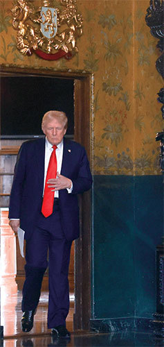 美國前總統特朗普於8月8日抵達佛羅里達州的海湖莊園舉行新聞發布會。(Joe Raedle/Getty Images)