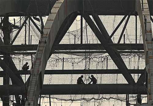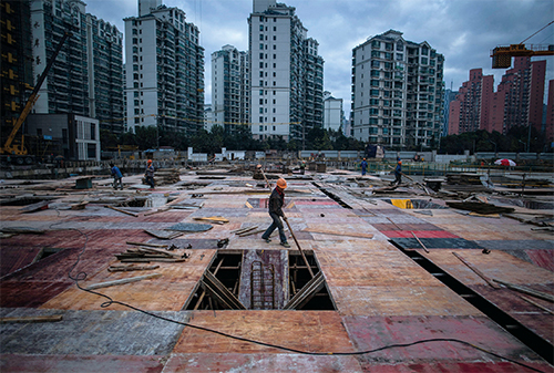 習近平常說他執政之後必須「啃硬骨頭、涉險灘」,試圖合理化中國近幾年來的經濟下行如房地產泡沫、地方債、金融風險等。圖為2022年2月28日,北京的一個基建工地。(Noel Celis / AFP)
