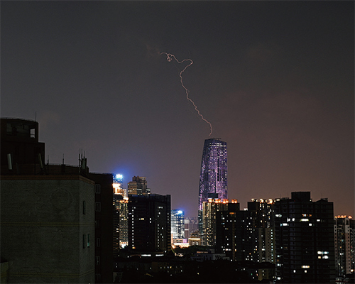 2024年8月15日,夜晚的閃電劃過上海市區上空。(Hector Retamal / AFP via Getty Images)