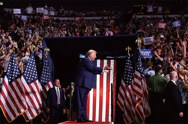 特朗普的20個核心競選承諾,對未來的美中關係頗具意義。圖為特朗普2024年8月17日在賓州舉行的競選集會上登台。