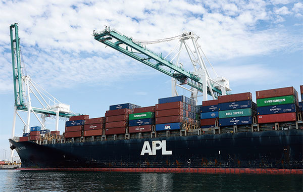 特朗普承諾全面加徵關稅,包括對來自中國的進口商品徵收高達60%的關稅。圖為2022年6月9日,一艘貨船停泊在佛羅里達州邁阿密港。(Joe Raedle / Getty Images)