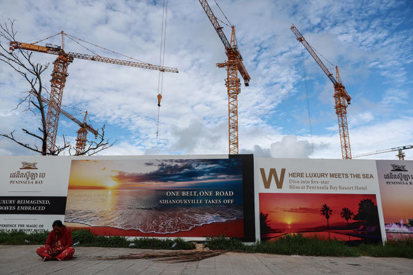中共實施「一帶一路」戰略的邏輯是將全球經濟從美國轉向中國,並使更多的國家依賴或受制於中共,從而削弱美國。圖為2024年7月1日,柬埔寨西哈努克市「一帶一路」宣傳廣告。(Valeria Mongelli / Getty Images)